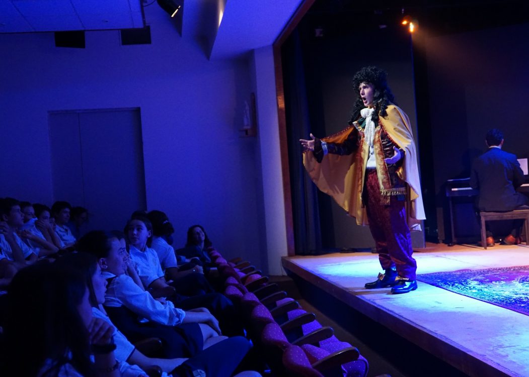 Durante la última semana de noviembre el elenco del Electivo de Teatro Clásico, conformado por alumnos de I y II Medio, presentó varias funciones de la comedia El burgués gentilhombre, del Molière, en el Auditorio del Colegio.